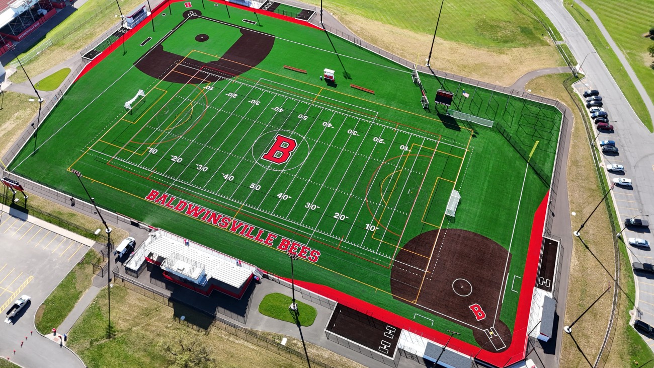 - New multipurpose synthetic turf field with bleachers, press box, and scoreboards.